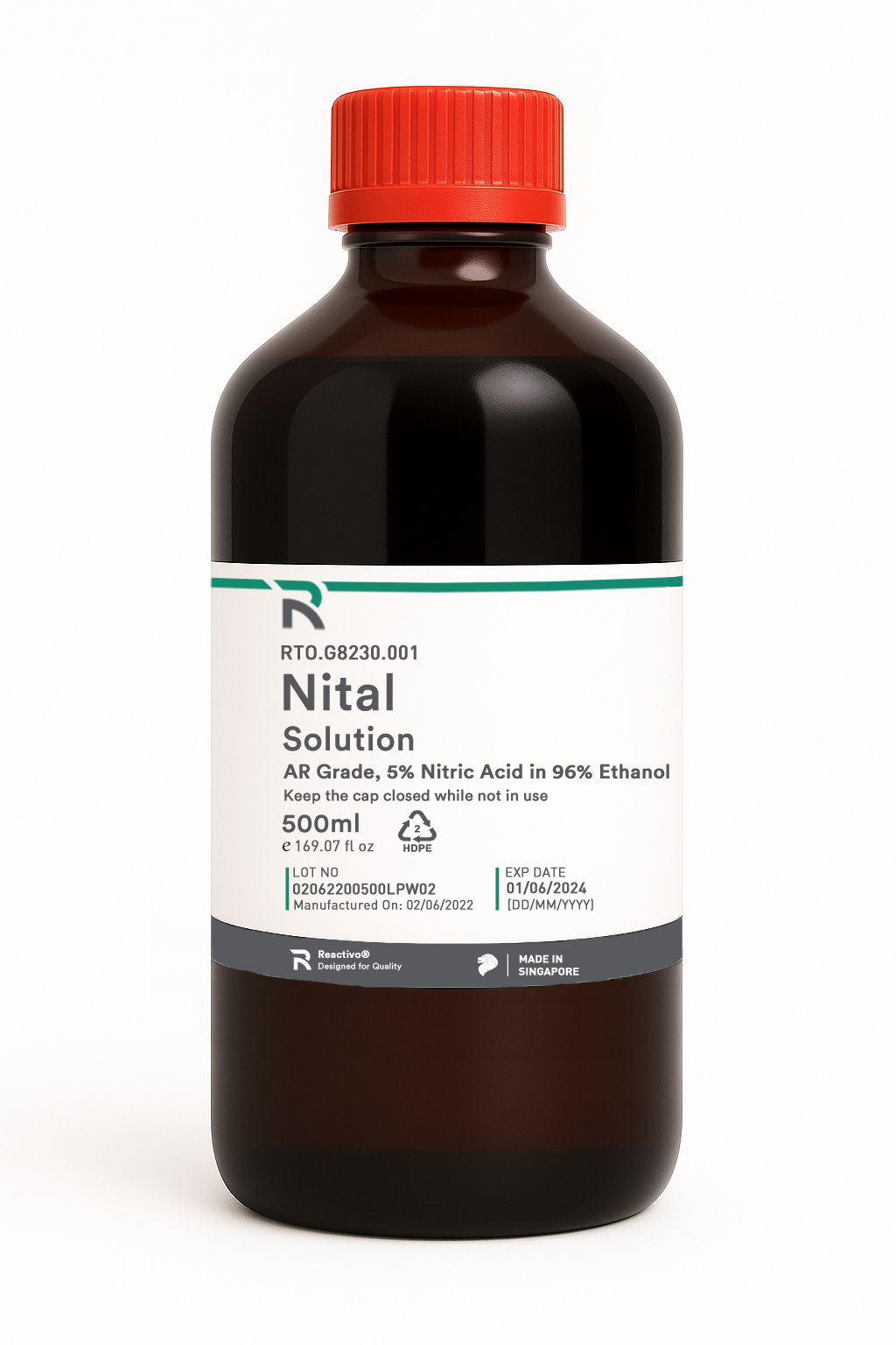 | RTO.RWH01.001 | 5% Nitric Acid in 96% Ethanol | 500ml/bottle | 5-7 days | Availability: 10 in stock | SGD48.00 |